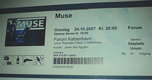 - ↑ a b c Muse-koncert flyttet til Forum (2007-08-20). Soundvenue. Retrieved 2007-08-21 from soundvenue.com.