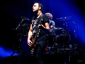 (Manson Red Glitter, black finish/maple fretboard Fender Jazz Bass) - Map of the Problematique [watch]
