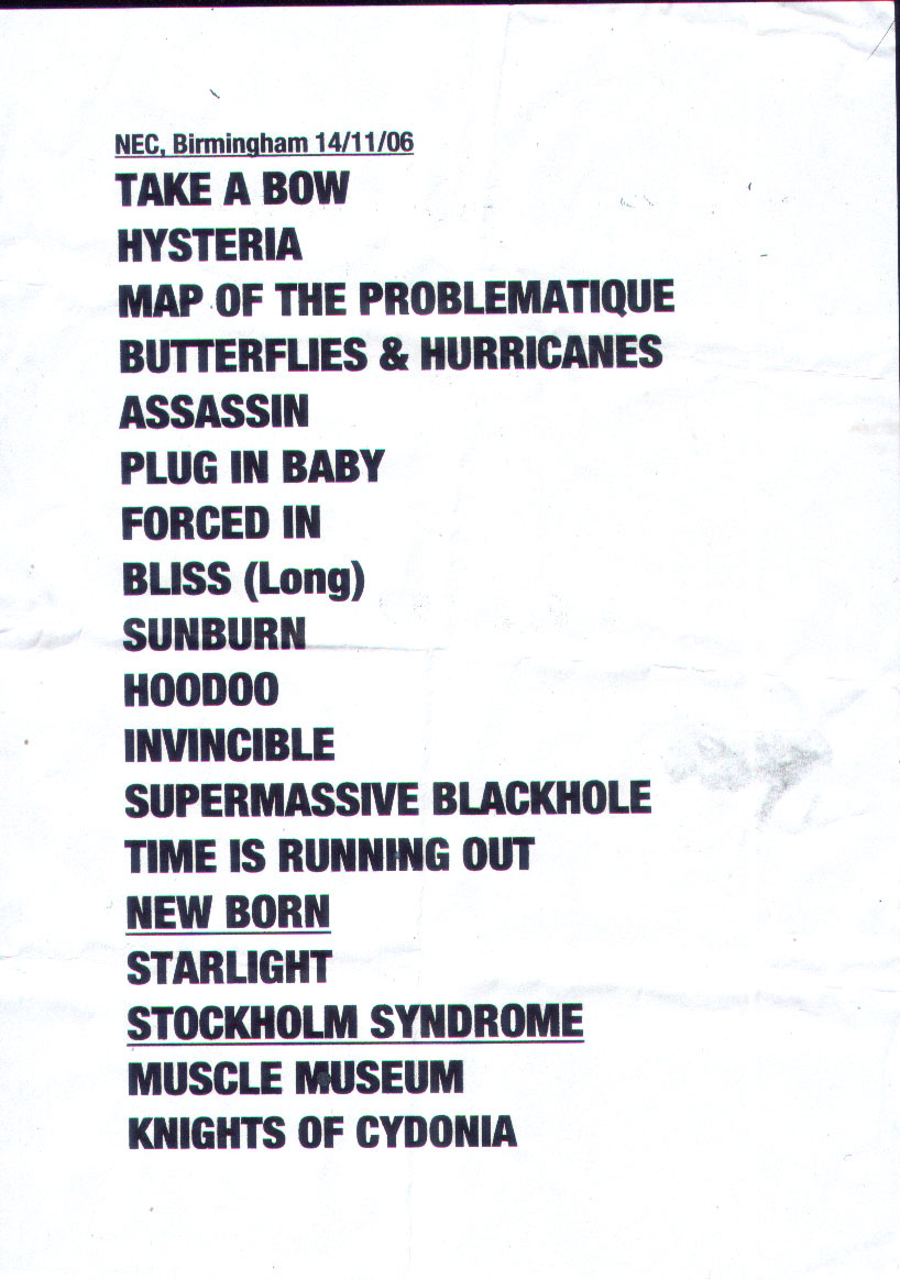 Birmingham Arena 14th November 2006 set list