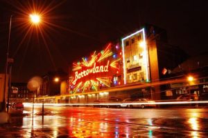 Barrowland Ballroom (also known as Barrowlands) is a music venue and dance hall, located in Glasgow, Scotland. The building opened in 1934, built by Margaret McIver, known as "The Barras Queen", as part of the "Barras" street market (properly known as the "Glasgow Barrowland market"), after which the area and the ballroom are named. The market still continues until the present day. In 1958, the building was largely destroyed by fire, leading to it's completete rebuild. The restored ballroom opened in 1960. The Barrowland building includes large street-level halls used for the weekend markets, with a hall above them. The neon sign, located at the front of the building, is believed to be the biggest of it's kind in the UK, allthough this cannot be confirmed as the order documents with the specifications have been lost. The venue itself has a capacity of around 2,100 people and is known for it's sprung dance floor and acoustics.