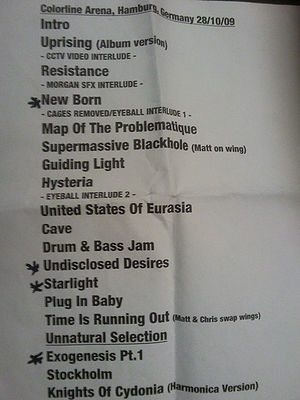 - ↑ a b c d e HAMBURG - Muse - Tickets (2009-06). EventIM. Retrieved 2009-06-22 from www.eventim.de[dead link].