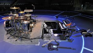 Like Bellamy, Morgan Nicholls started using the Kaoss Pad from start of the Black Holes and Revelations tour, although he uses the KP3 model. The KP3 is used by him due to slightly updated built-in ambient synth sounds. Morgan's mostly using the white noise effect on the pad, although several other effects come into play during the gig. Morgan also used the KP3 as a sampler effects processor on a few songs, feeding the playback recordings into the KP3 and manipulating the pad itself.