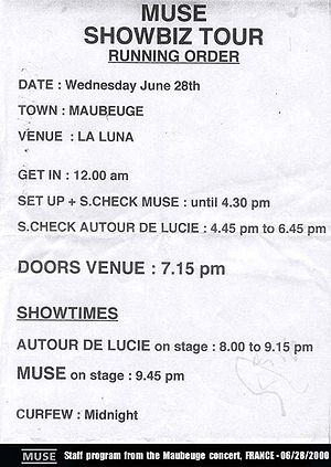 - 16:30: Muse sound check