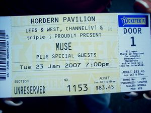 - ↑ rivergumrob. (2007-01-23). Setlists - Sydney 23rd and 24th Jan. Muselive. Retrieved 2007-01-23 from www.muselive.com.